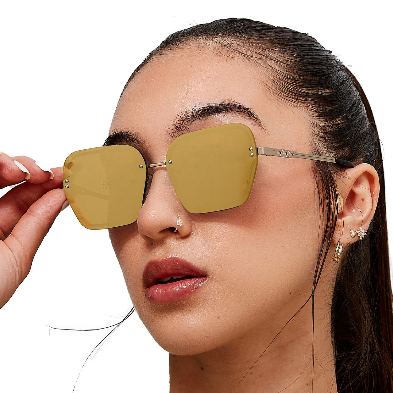 What sets these sunglasses apart is the attention to detail – delicate chain accents adorn the lenses, adding a touch of glamour and creating a striking visual impact. The lightweight and durable construction ensures comfort and longevity, making them the perfect companion for your daily adventures.